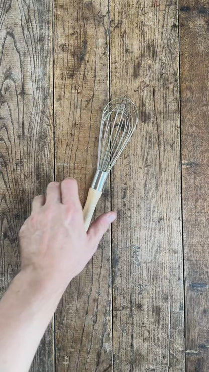 Where the French whisk shines at sauces and smooth batters, this 10" balloon whisk is built for lift. Its wide, rounded head is perfect for whipping cream, beating eggs, and folding air into mixtures that need volume. The smooth wood handle delivers balance, comfort, and class, while sturdy wires promise years of service. Made in the USA — a timeless companion for bakers and cooks alike.