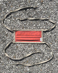 Papaya cotton non-medical reusable mask w/ khaki ties. Handmade in our Omaha studio.